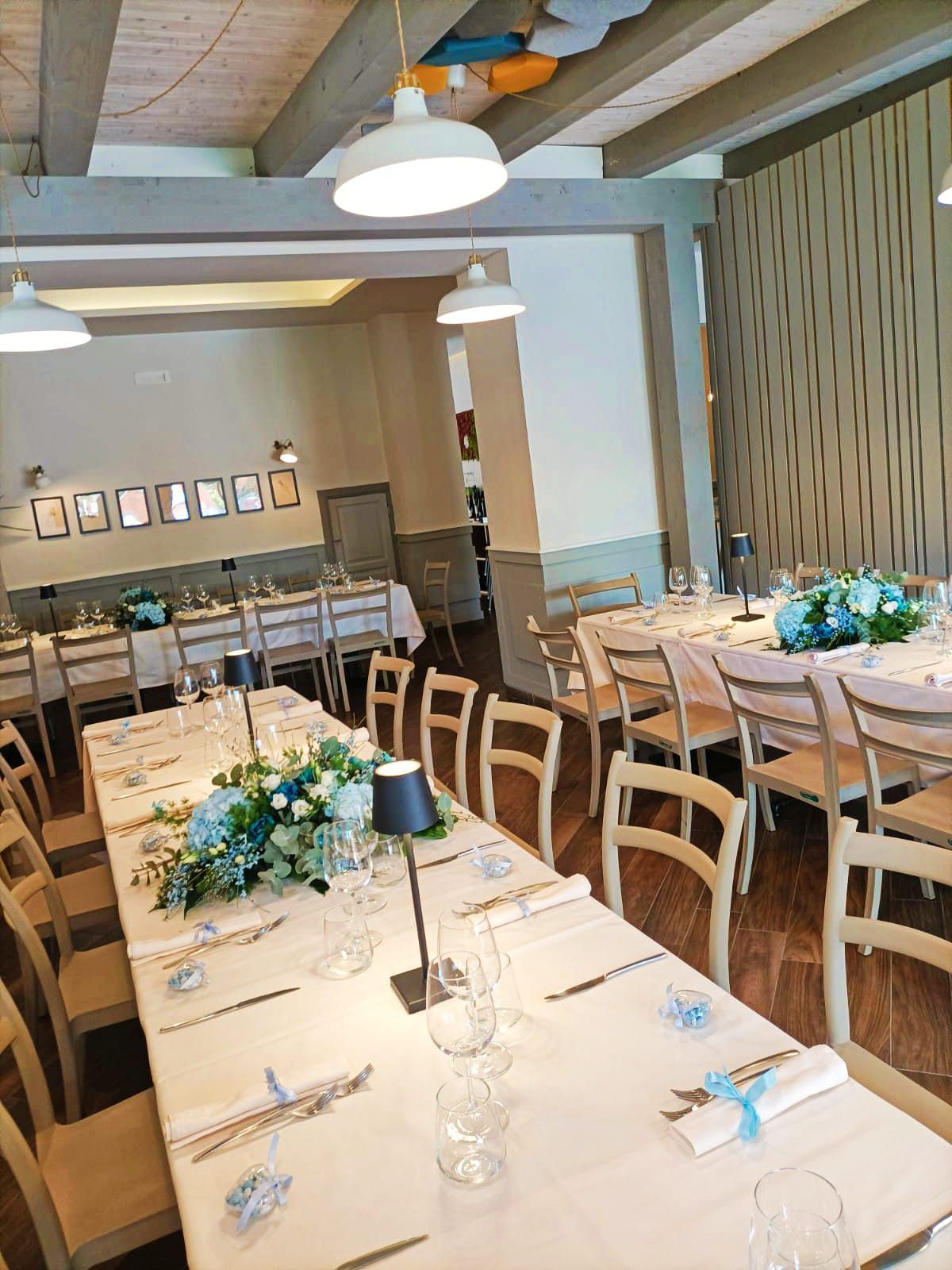 La sala principale del ristorante è ampia e perfetta per celebrare ogni tipo di evento. I tavoli sono ben distanziati per garantire la privacy e il comfort dei nostri ospiti. L'arredamento è semplice e moderno, creando un'atmosfera rilassante e invitante.